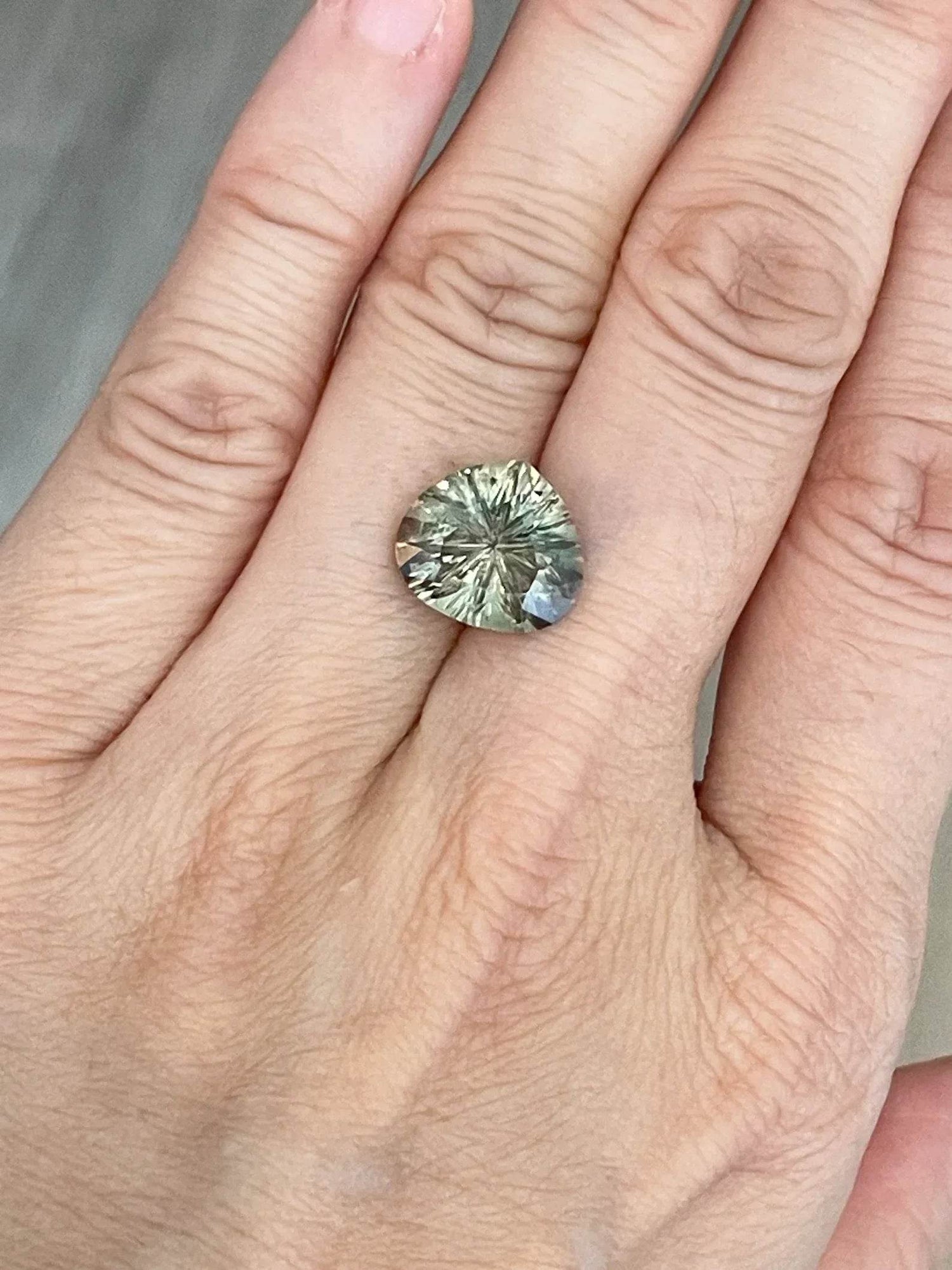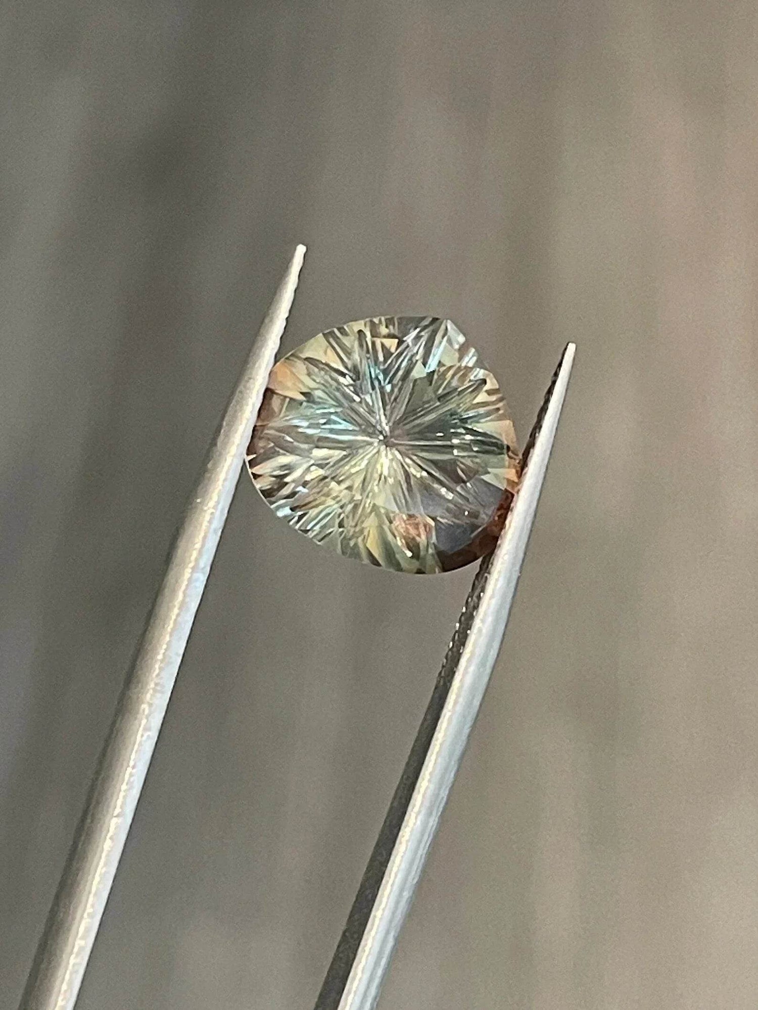 Each facet has been hand-carved with precision and imagination, blending symmetry with organic flow — a hallmark of fantasy cutting. The result is a gemstone that feels alive, its brilliance shifting between ethereal translucence and radiant fire. Perfect for a one-of-a-kind pendant or statement ring, it embodies the fusion of craftsmanship and nature’s poetry that defines Auré.