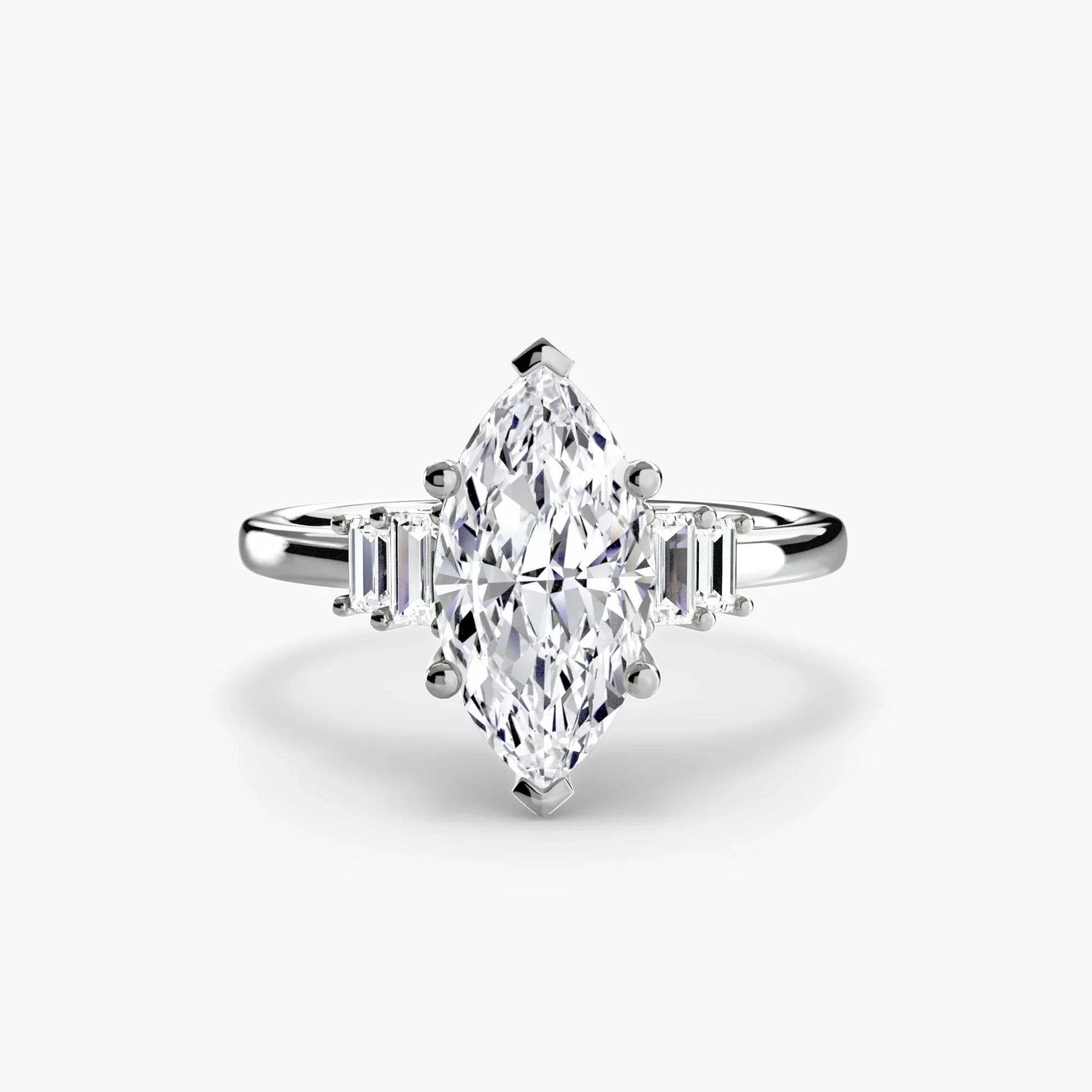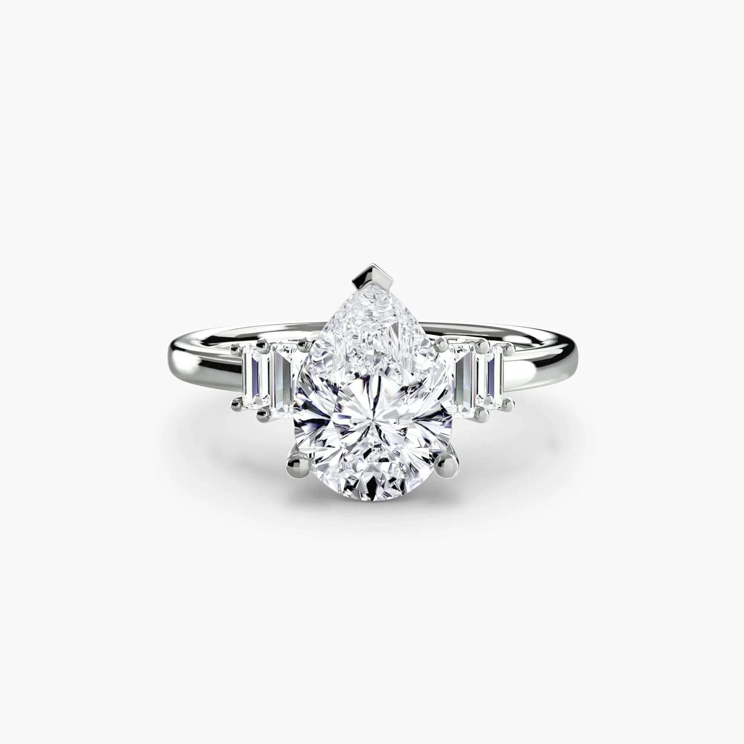 Baguette Accent Solitaire - 14K White Gold / Round is backordered and will ship as soon as it is back in stock.