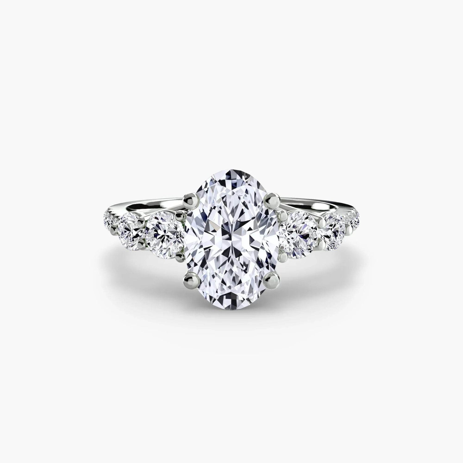 Five Stone Ring with Pavé Band - 14K White Gold / Round is backordered and will ship as soon as it is back in stock.