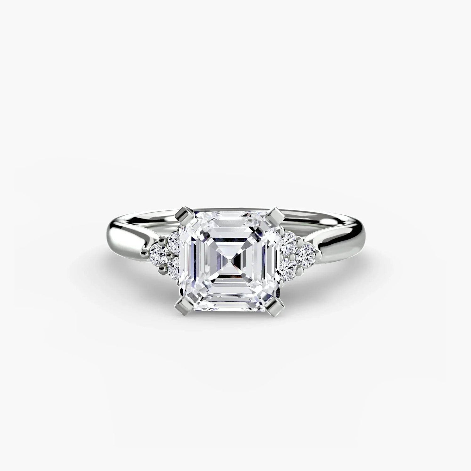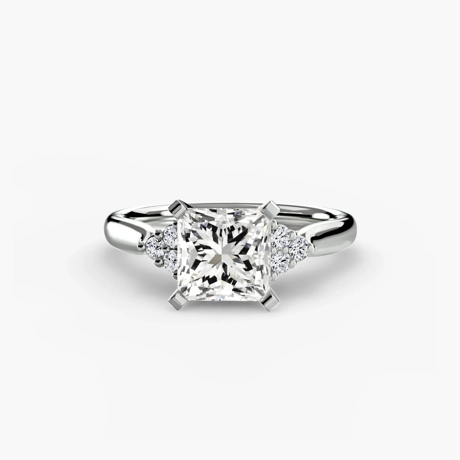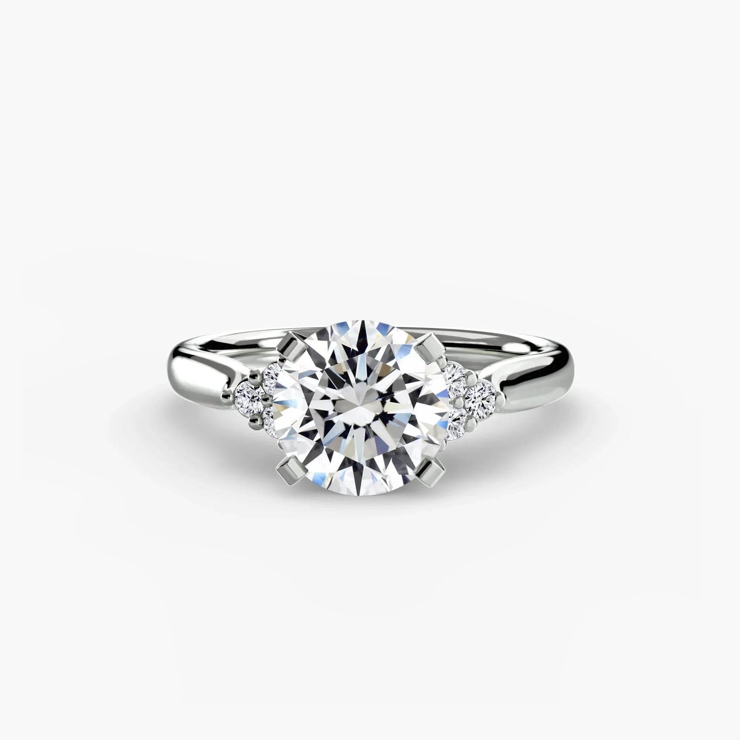 Designed with side stones that gracefully complement the center stone, this ring strikes a balance between classic elegance and added brilliance. Perfect for those who want a refined look with just the right amount of sparkle.