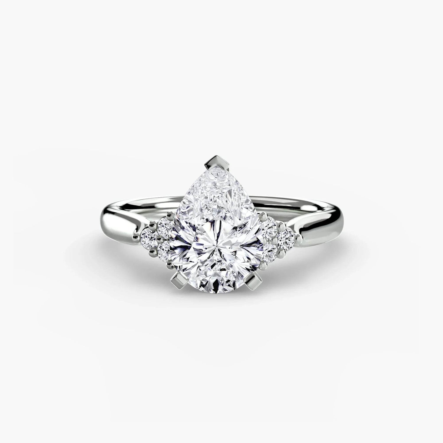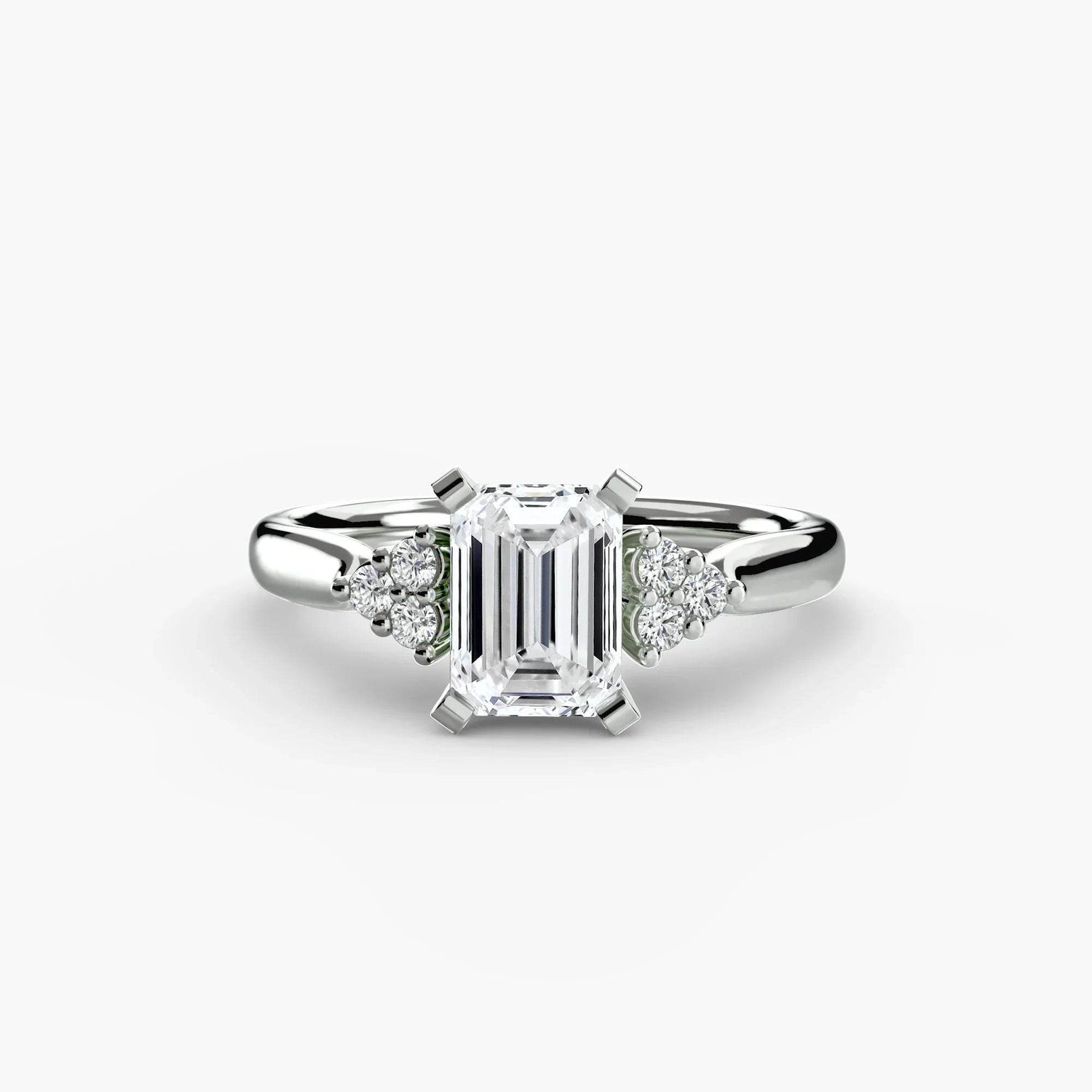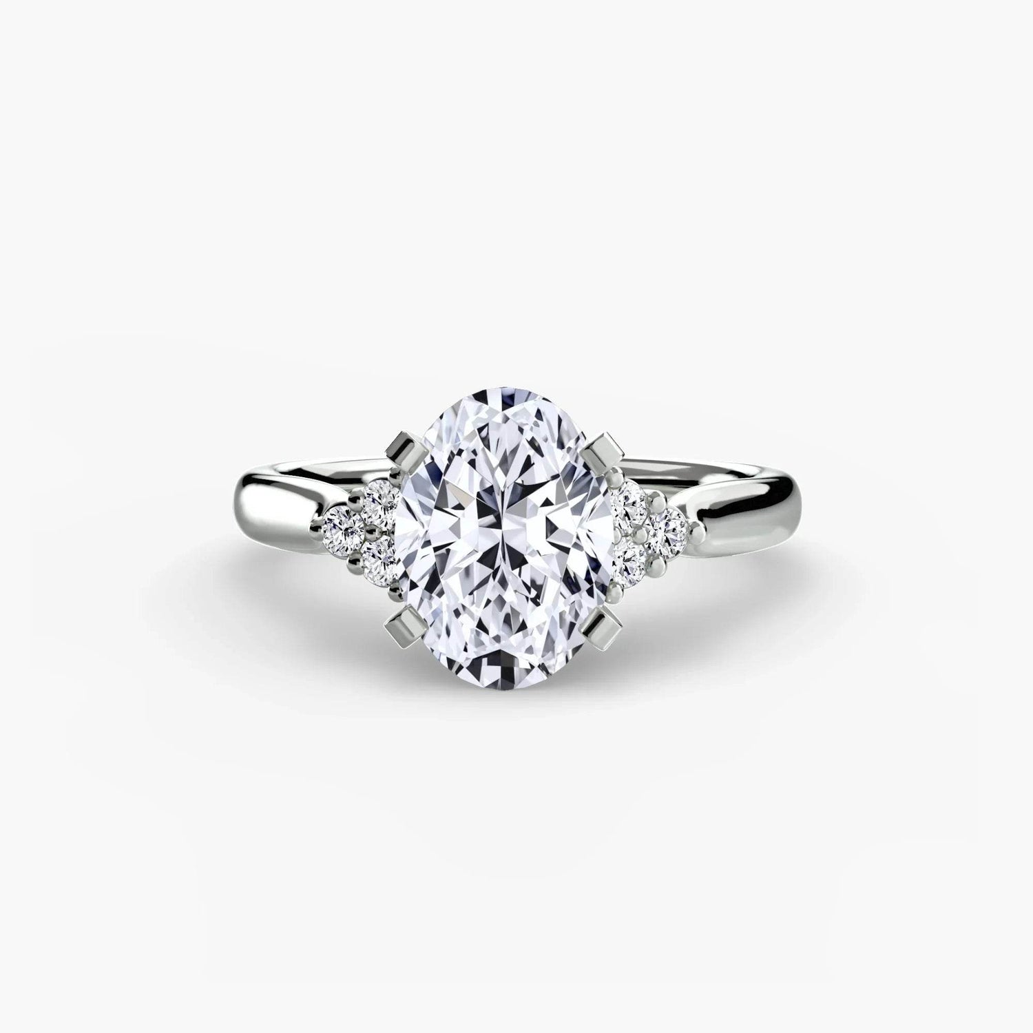 Designed with side stones that gracefully complement the center stone, this ring strikes a balance between classic elegance and added brilliance. Perfect for those who want a refined look with just the right amount of sparkle.
