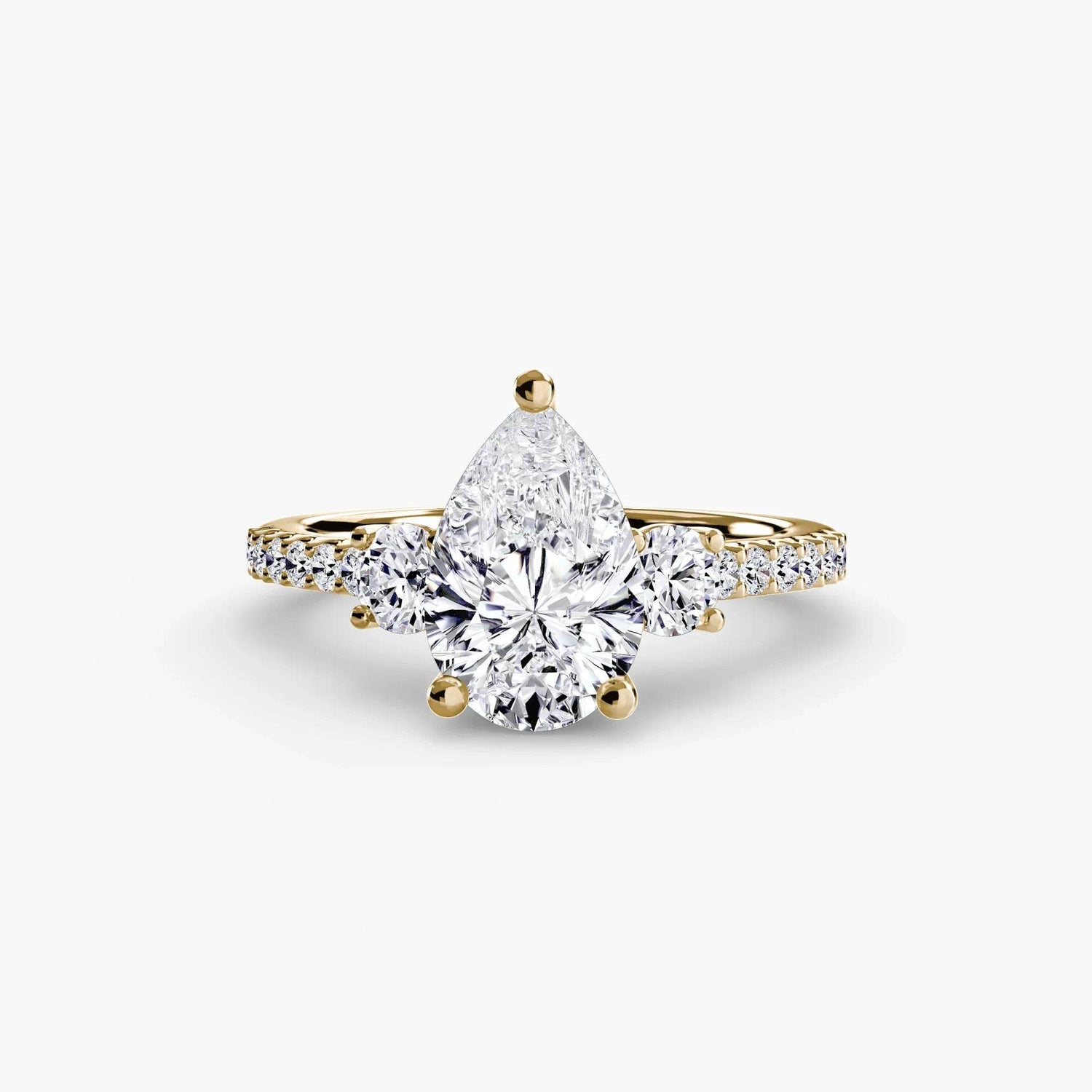 This elegant three-stone ring symbolizes your past, present, and future, elevated with a pavé band for extra sparkle and detail. A perfect union of meaning and brilliance.