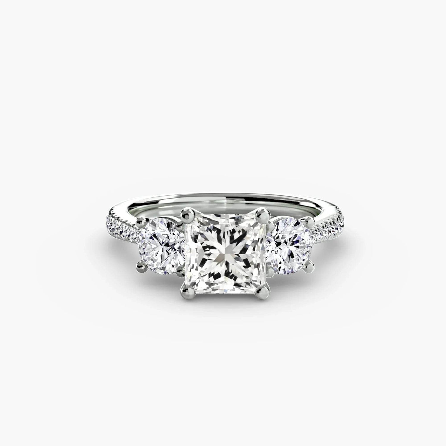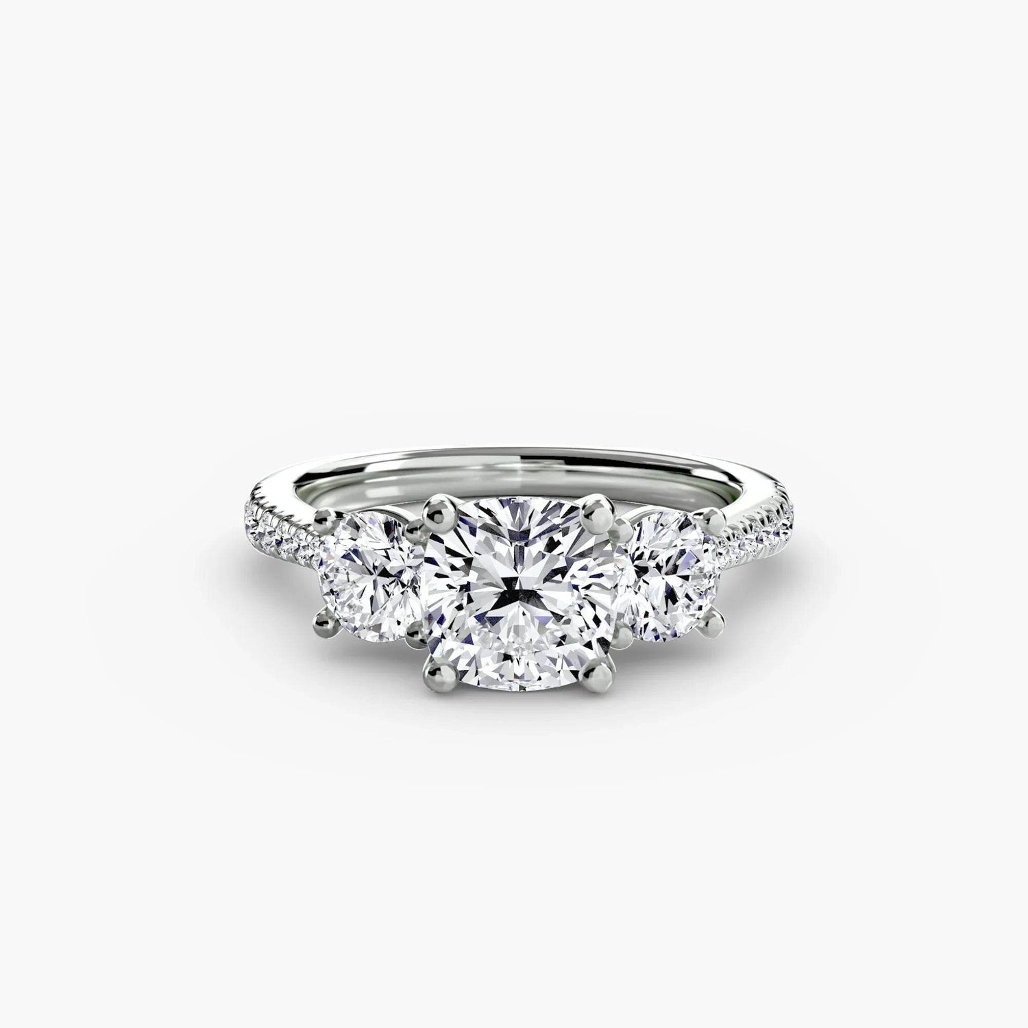 This elegant three-stone ring symbolizes your past, present, and future, elevated with a pavé band for extra sparkle and detail. A perfect union of meaning and brilliance.