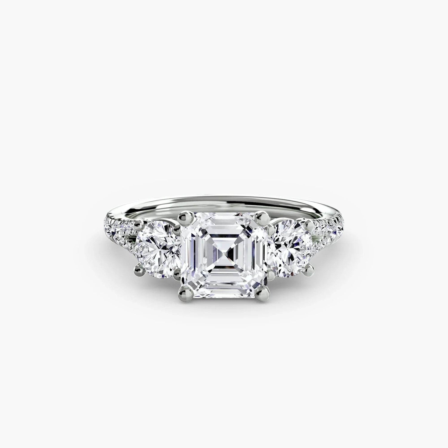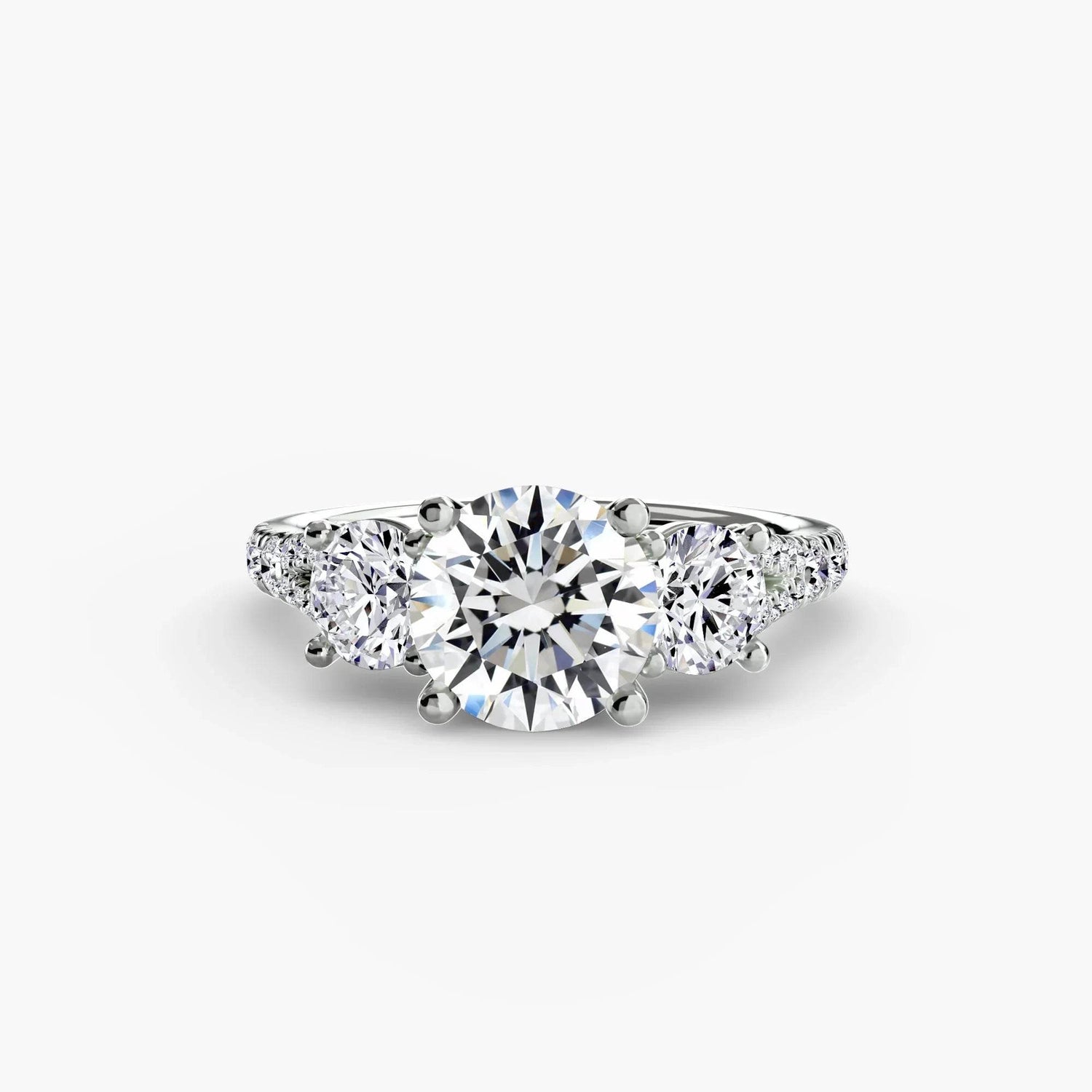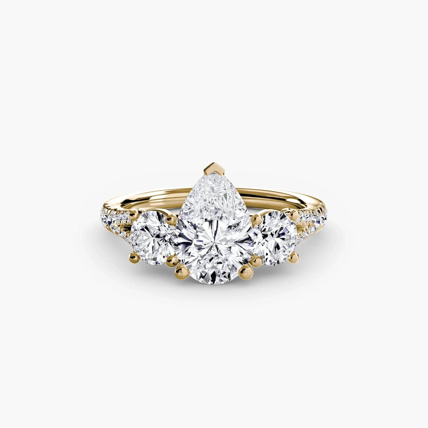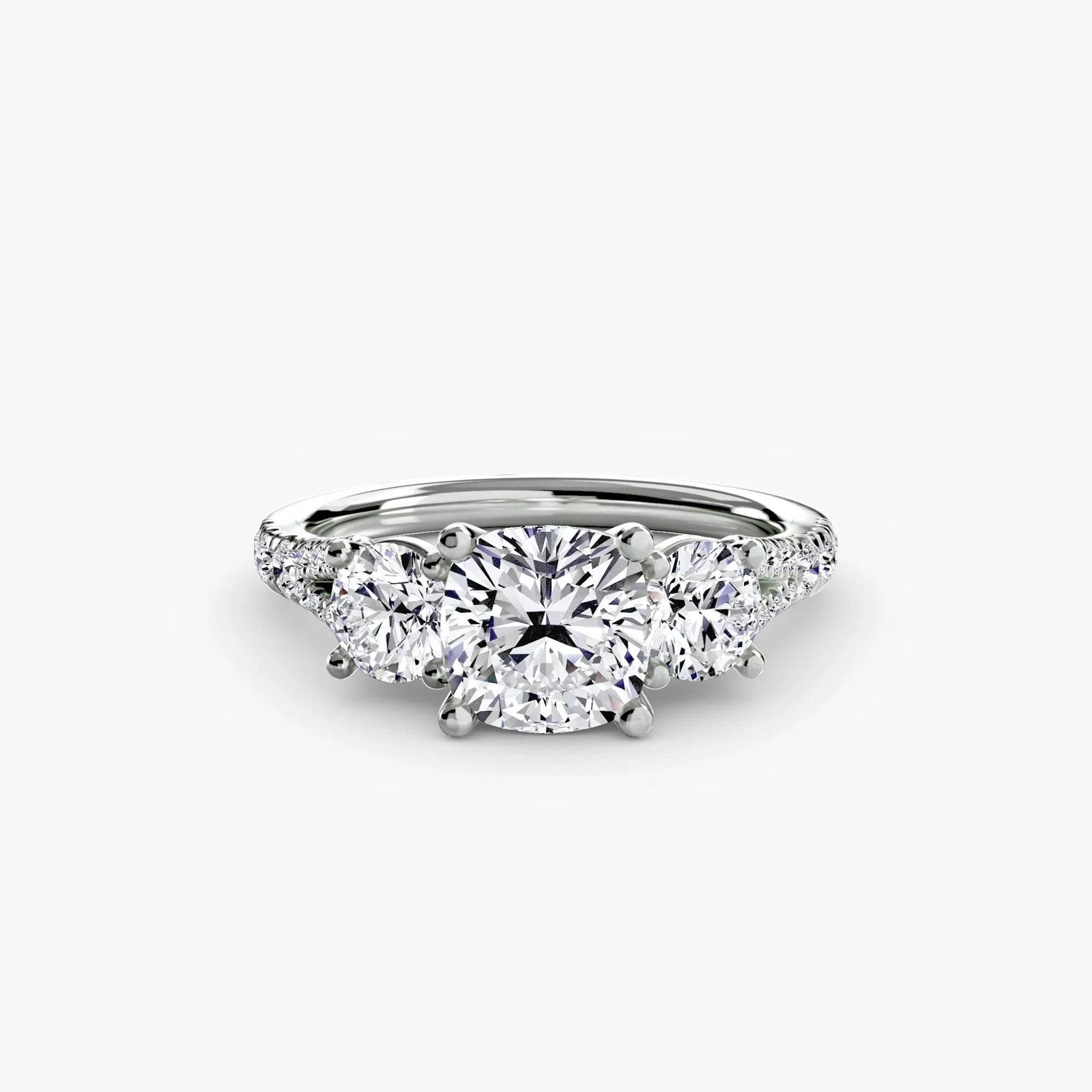 This elegant three-stone ring symbolizes your past, present, and future, elevated with a pavé band for extra sparkle and detail. A perfect union of meaning and brilliance.